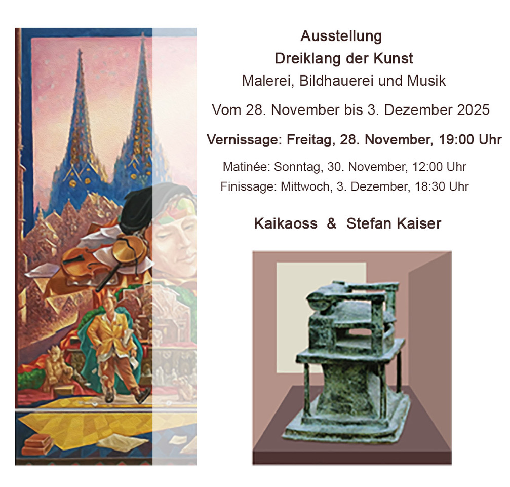 Vom 28. November bis 3. Dezember 2025 präsentiert das Alte Pfandhaus Köln die Ausstellung „Dreiklang der Kunst“.